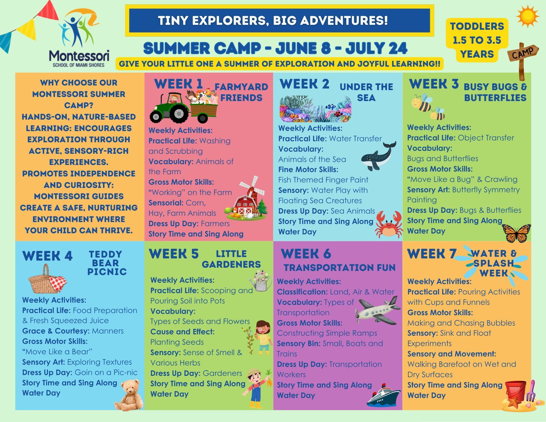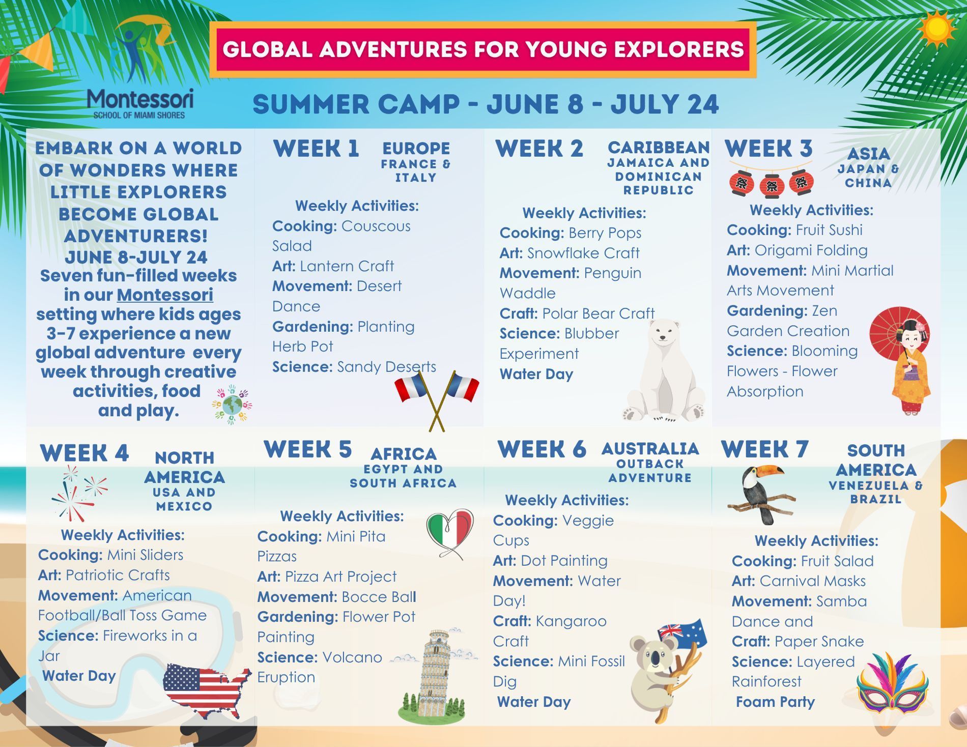 This summer, children will travel across the globe without ever leaving campus. At Montessori School of Miami Shores, our young explorers will discover new cultures each week through hands-on activities, creative expression, movement, science experiments, cooking, and outdoor play.